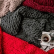 Sones El Yapımı Kalın Yün Örgü Battaniye Kanepe Şönil Çubuk Örgü Battaniye, Boyut: 80 X 100 Cm Şarap Kırmızısı