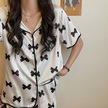 Sones Kadın Buz İpek Pijama İnce Kısa Kollu Şort İpek Takım Yay Çok Renkli
