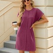 Sones Kadın Organik Pamuk Kısa Kollu Midi Elbise Rahat Bol Kesim Saf Renk İlkbahar Yaz Elbisesi Şarap Kırmızısı