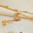 Sones Opk Gx2437 Paslanmaz Çelik Yıldız Ay Püskül Kolye Çift Katmanlı Yığılmış Köprücük Kemiği Zinciri Altın