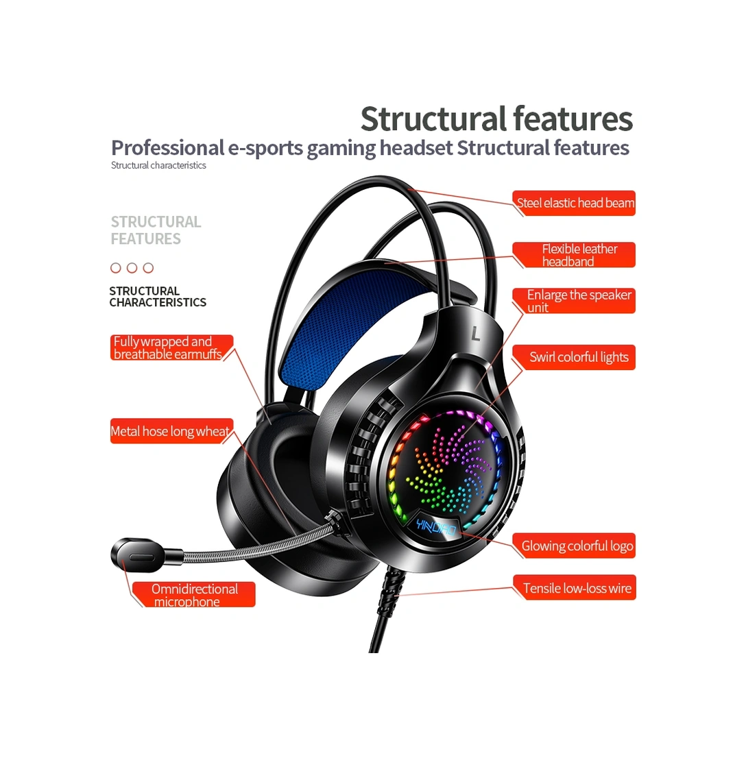 Sones Yındıao Q7 Renkli Işık Bilgisayar Kablolu Kulaklık Usb Oyun Kulaklığı Çift 3,5 Mm + Usb Siyah