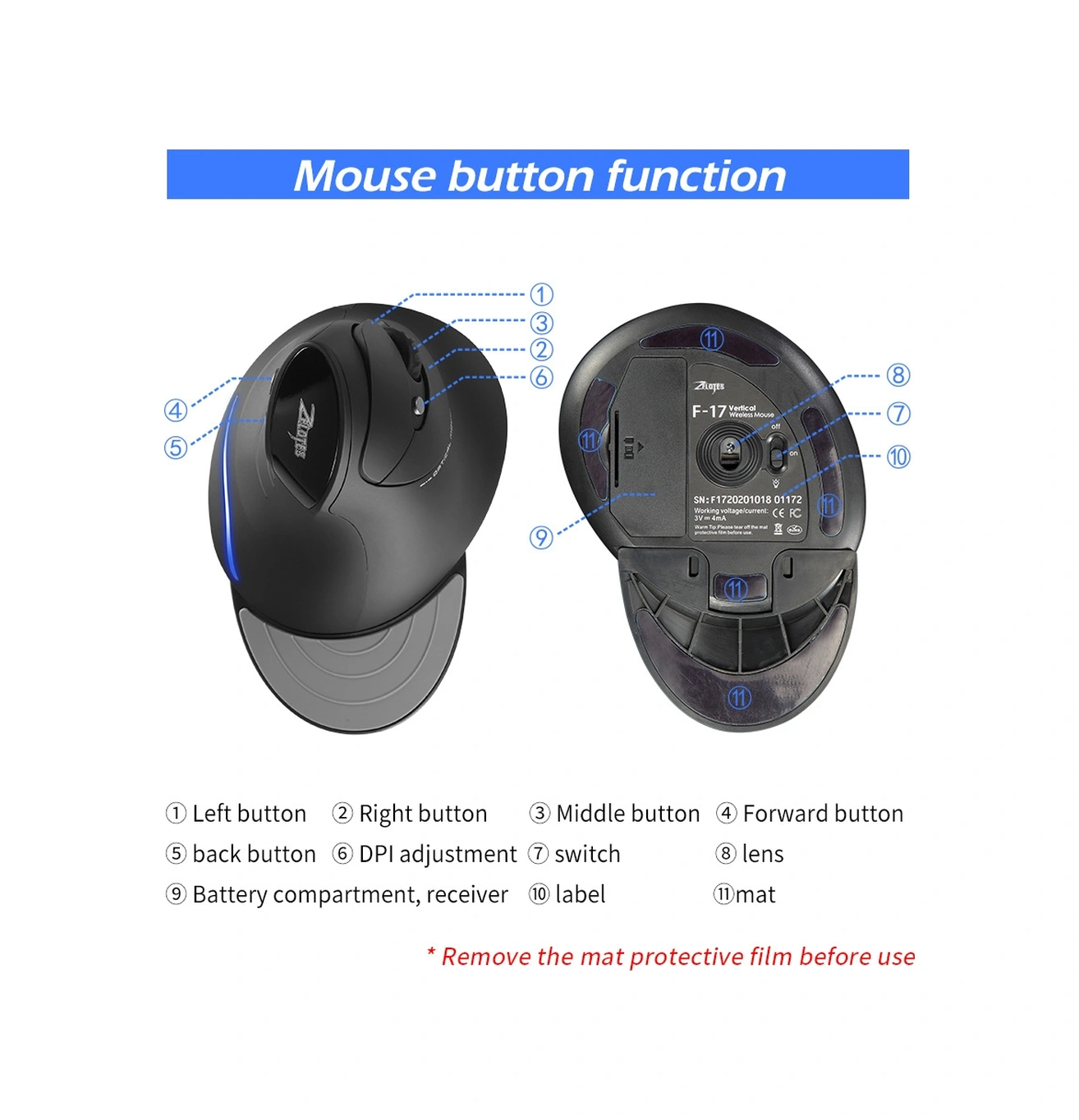 Sones Zelotes F17 6 Düğmeli Dikey Tutuşlu Ergonomik Kablosuz Fare Diğer