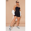 Soonaksesuar Kadın Asimetrik Askılı Mini Kaşkorse Bodycon Tulum Siyah
