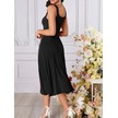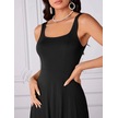 Soonaksesuar Kadın Askılı Geometrik Yakalı Geniş Kesim Detaylı Ithal Krep Elbise Siyah