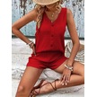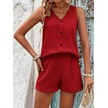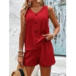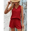 Soonaksesuar Kadın Askılı Kolsuz V Yakalı Önden Düğmeli Bürümcük Bluz Ve Short Ikili Takım Kırmızı