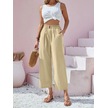 Soonaksesuar Kadın Bel Büzgü Ve Düğme Detay Kapri Keten Pantolon Bej