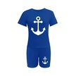 Soonaksesuar Kadın Kısa Kollu Çapa Baskılı Viskon Ikili Takım Saks Mavi