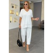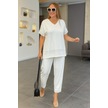 Soonaksesuar Kadın Kısa Kollu V Yakalı Pul Payetli Viskon Iki Iplik Bluz Ve Pantolon Ikili Takım Beyaz