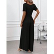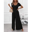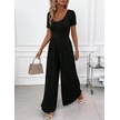 Soonaksesuar Kadın Kısa Kollu Yuvarlak Yaka Geniş Paçalı Bürümcük Tulum Siyah