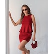 Soonaksesuar Kadın Modal Kumaş Volanlı Mini Etek Takım Kırmızı
