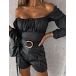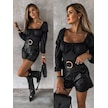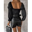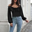 Soonaksesuar Kadın Uzun Kollu Kare Yaka Göğüs Büzgü Detay Sandy Bluz Siyah