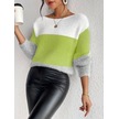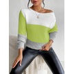 Soonaksesuar Kadın Uzun Kollu Kayık Yaka Çok Renkli Triko Bluz Yeşil