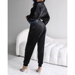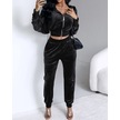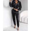 Soonaksesuar Kadın Uzun Kollu Önden Fermuarlı Krop Kadife Ceket Ve Pantolon Ikili Takım Siyah