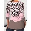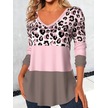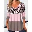 Soonaksesuar Kadın Uzun Kollu V Yakalı Leopar Baskılı Şardonlu Dalgıç Bluz Pembe