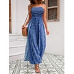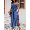 Soonaksesuar Kadın Yakası Gipe Detaylı Önden Yırtmaç Detaylı Desenli Süprem Pantolunetek Tulum Mavi
