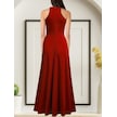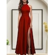 Soonaksesuar Kadınhalter Yaka Derin Yırtmaç Detaylı Tam Boy Ithal Krep Abiye Elbise Kırmızı