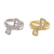Soulader Kadın Moda Lüks Açık Yüzük Zarif Barok İnci Tasarım Yay Formu Zirkon Taşlı Bakır Kaplama Altın Renk Şık Takı Aksesuar Gümüş