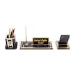 Space Polislere Özel Kalemlikli Ahşap Masa Seti Mermer Desenli Hediye Ofis Dekoratif Masa Üstü İsimlik