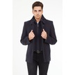 Sposo 1704 Çıkma Kapşonlu Yün Kaşe Lacivert Erkek Kaban Lacivert