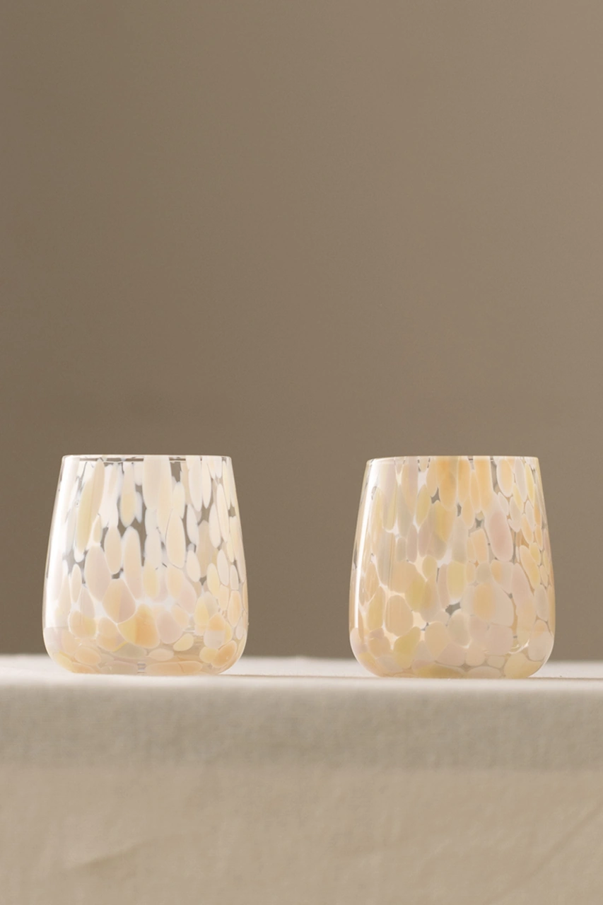 Spotted El Yapımı Kendinden Renkli 2'li Su Bardak Seti Bej-krem 330 Cc Renkli
