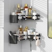 Springsun Banyo Köşe Dolabı, Duvar Üstü İki Katlı Sıralama Rafı, Delme Yok Kurulum, Rust Öğesi, Mutfak/banyo/ Balkon Depolama Çözümü Siyah Diğer