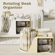 Springsun Beyaz Plastik Masa Düzenleyici - 360 Derece Döner Kalem Kutusu, 2 Çekmeceli Ve Fakatlı, Ofis/öğrenci Stokaj Gereci, Çok Amaçlı Masa Tahtası Organizatörü Beyaz