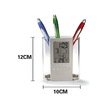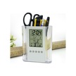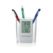 Springsun Ofis Ve Ev İçin Transparan Abs Mutfak Kalem Kutusu - Saat, Takvim, Zamanlayıcı, Termometre Ve Lcd Ekranlı Otomatik Çekmeceli Organizer Gri