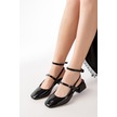 St-003 Siyah Rugan Günlük 4 Cm Topuklu Bayan Ayakkabı Renksiz