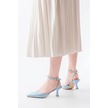 St-004 Bebe Mavi Rugan Günlük 7 Cm Topuklu Bayan Ayakkabı