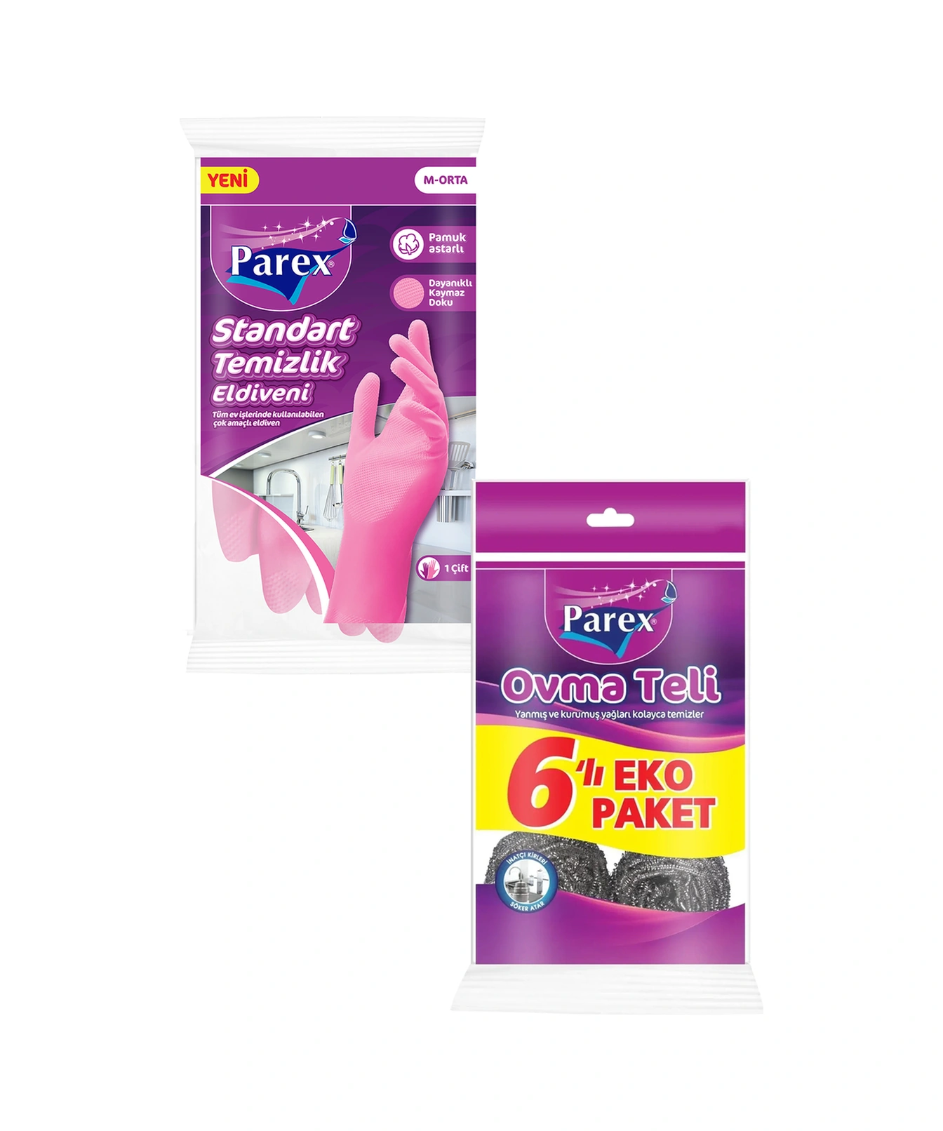 Standart Temizlik Eldiveni Ve Ovma Teli Paketi