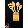 Standlı Ahşap Tahta Servis Sunum Kaşık Seti - Doğal Yağlı 5 Parça