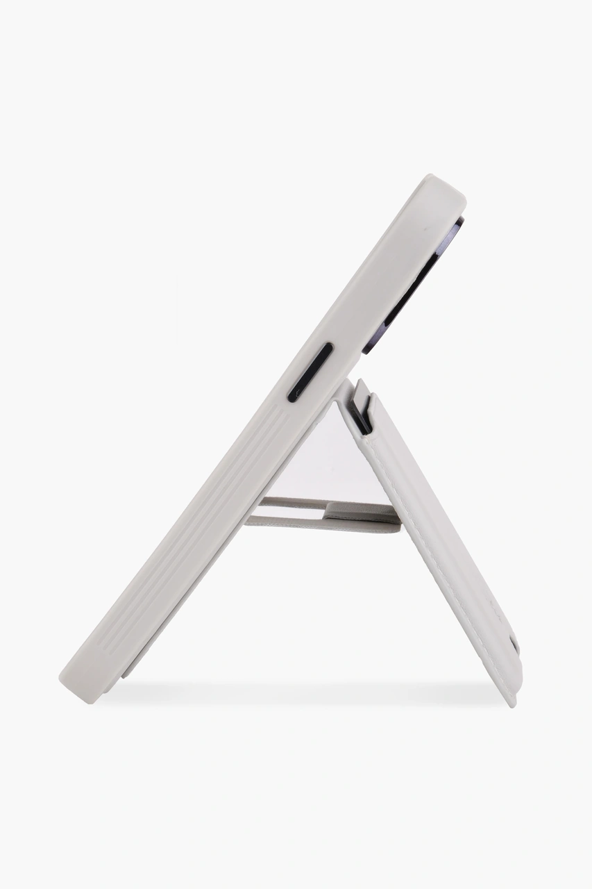 Standlı Iphone 15 Gri Deri Telefon Kılıfı Gri