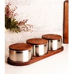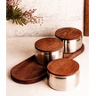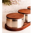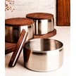 Steel&More Ahşap Kapak Çelik Çerezlik 7 Parça Sızdırmaz Saklama Kabı 12cm Gri