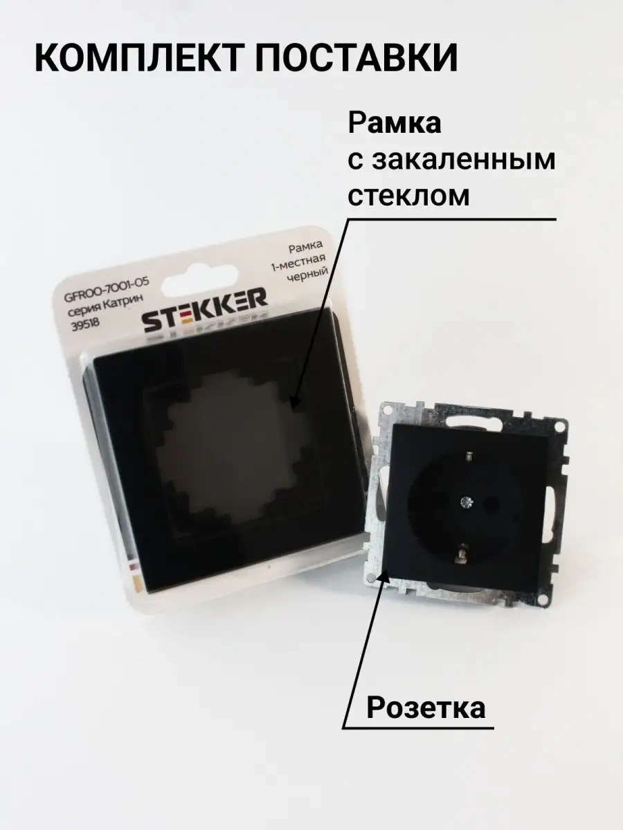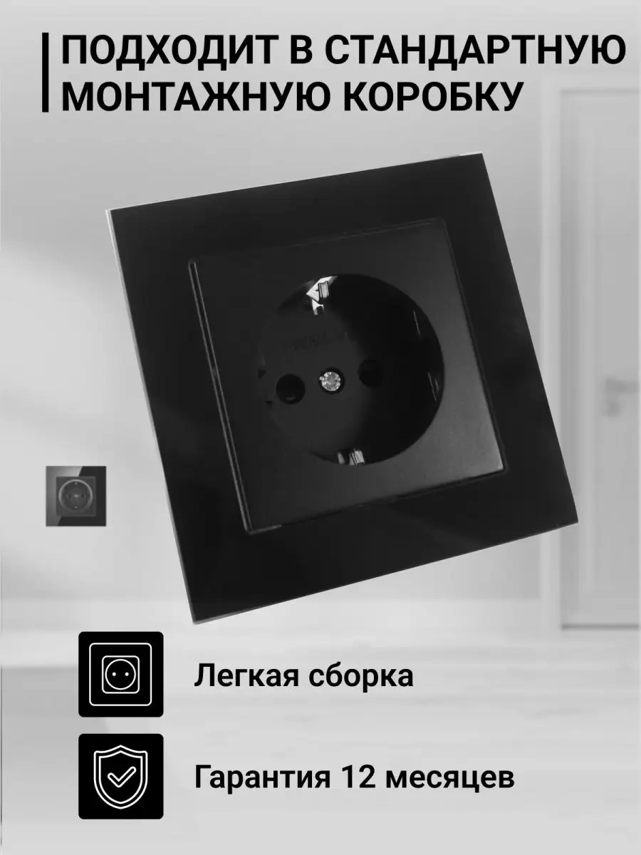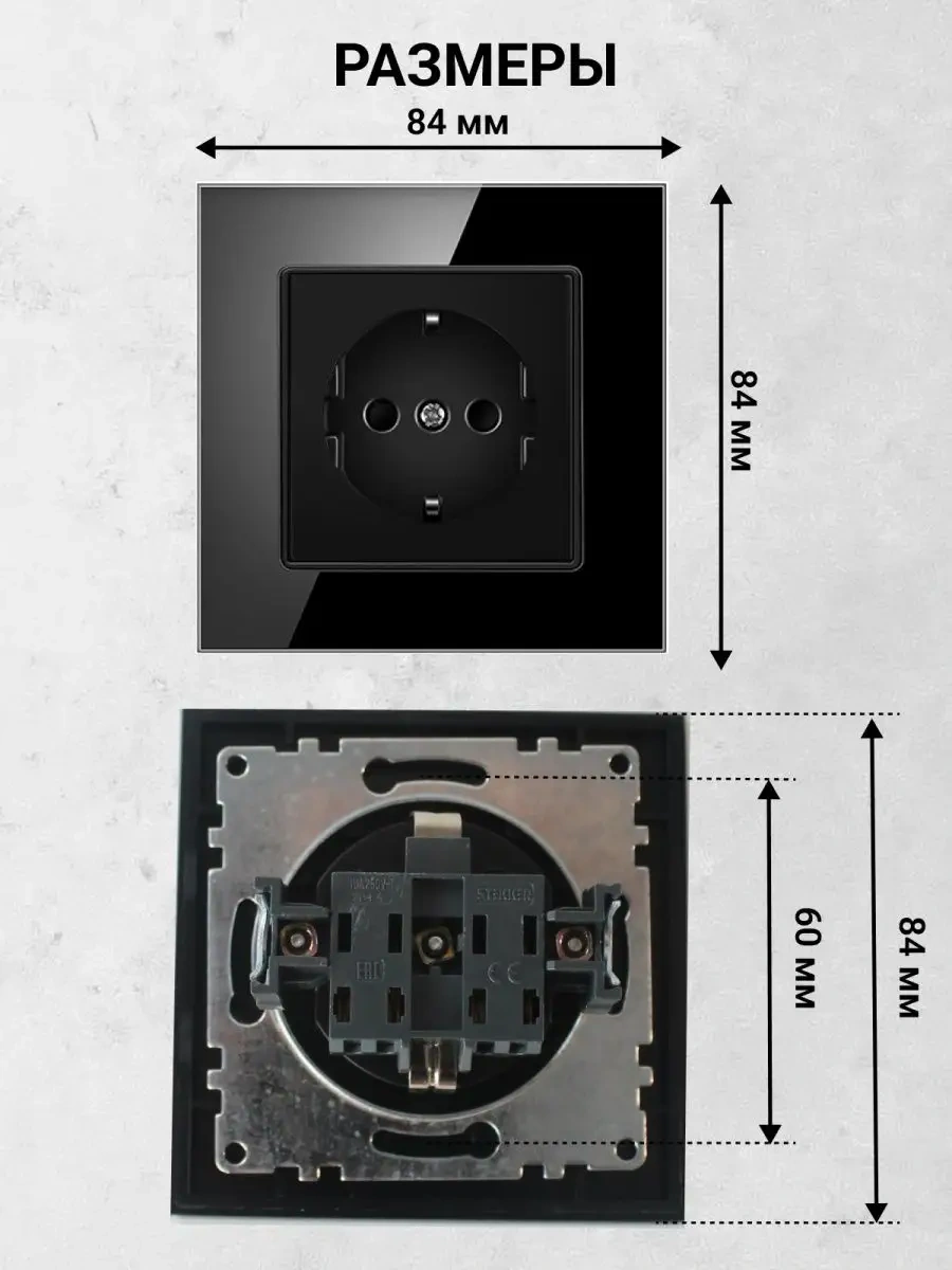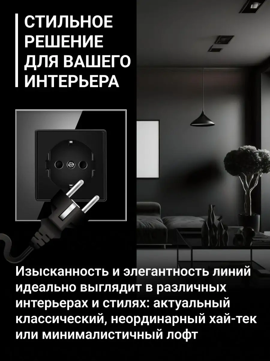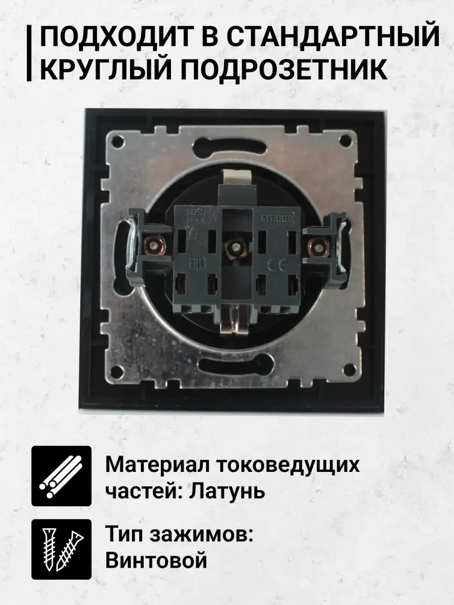 Stekker Siyah Topraklamalı Cam Priz İç Mekan Kullanımı İçin 154141754 Tekli Camlı Priz, Koruyucu Kapaklarla