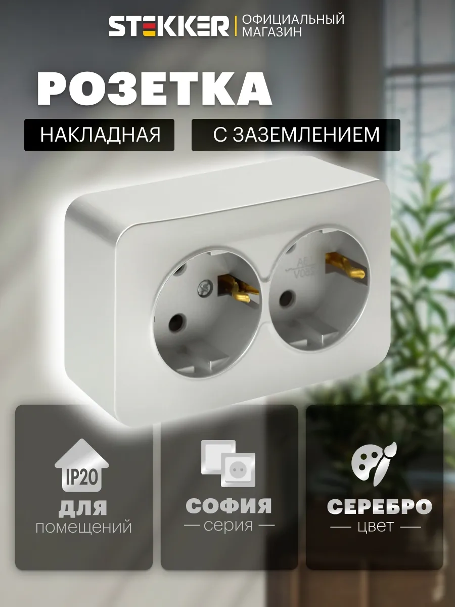 Stekker Topraklamalı Çiftli Priz Yüzeye Montaj 242575288 Stekker Mst16-12-03 Seri Sofia 49328