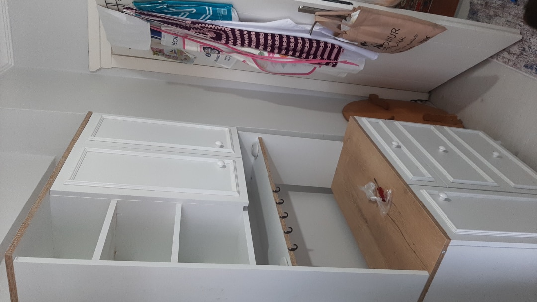 kurulumu cok zor bir şema bile koyması zor gelmis satıcıya benzer bir videoyu izleyerek kurabildik tam 3 saatimizi aldi 2 kişi ayrıca ortadaki rafi yanls delinmis dolap ust kapakları arsinda 1 cm boşluk oluştu parasına göre fena sayılmaz ama sunla mdf deil sanki