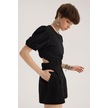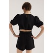 Stella Pulvis Siyah Keten Karışımlı Beli Lastik Detaylı Balon Kol Bluz