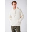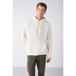 Steve Erkek Yumusaçık Kumaşlı Kordonlu Oversize Kapüşonlu Kanguru Cepli Ekru Sweatshirt