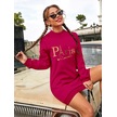 Stilaura Kadın Uzun Kollu Bisiklet Yaka Yazılı Kısa Viskon Iki Iplik Elbise Bordo