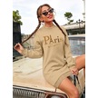 Stilaura Kadın Uzun Kollu Bisiklet Yaka Yazılı Kısa Viskon Iki Iplik Elbise Kahverengi