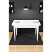 Still Beyaz Sunta 70x110 Sabit Mutfak Masası Takımı Beyaz Metal Ayak 4 Lacivert Sandalye Lacivert