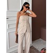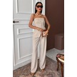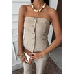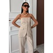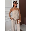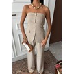 Straplez Büstiyerli Plazzo Pantolonlu Çizgili Takım 10151 Bej