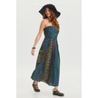Straplez Göğüs Cep Detaylı Kloş Elbise M