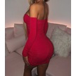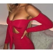 Straplez Kesim Önden Fiyonk İle Bağlamalı Bel Dekolteli Yanlardan Büzgülü Kolluklu Şık Elbise Kırmızı