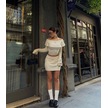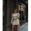 Straplez , Madonna , Carmen Yaka Croplu Mini Etekli İkili Takım Triko - Beyaz Beyaz