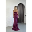 Straplez Saten Uzun Mürdüm Abiye Mürdüm