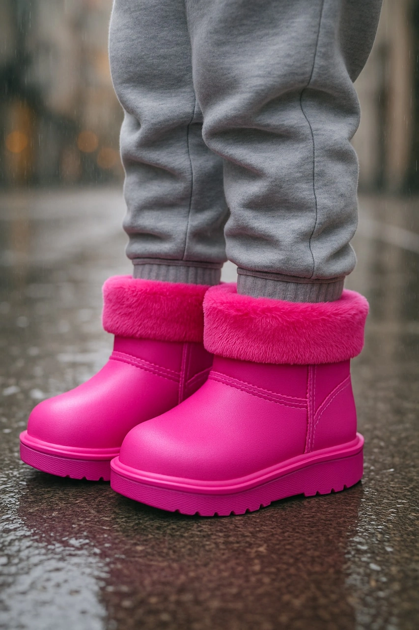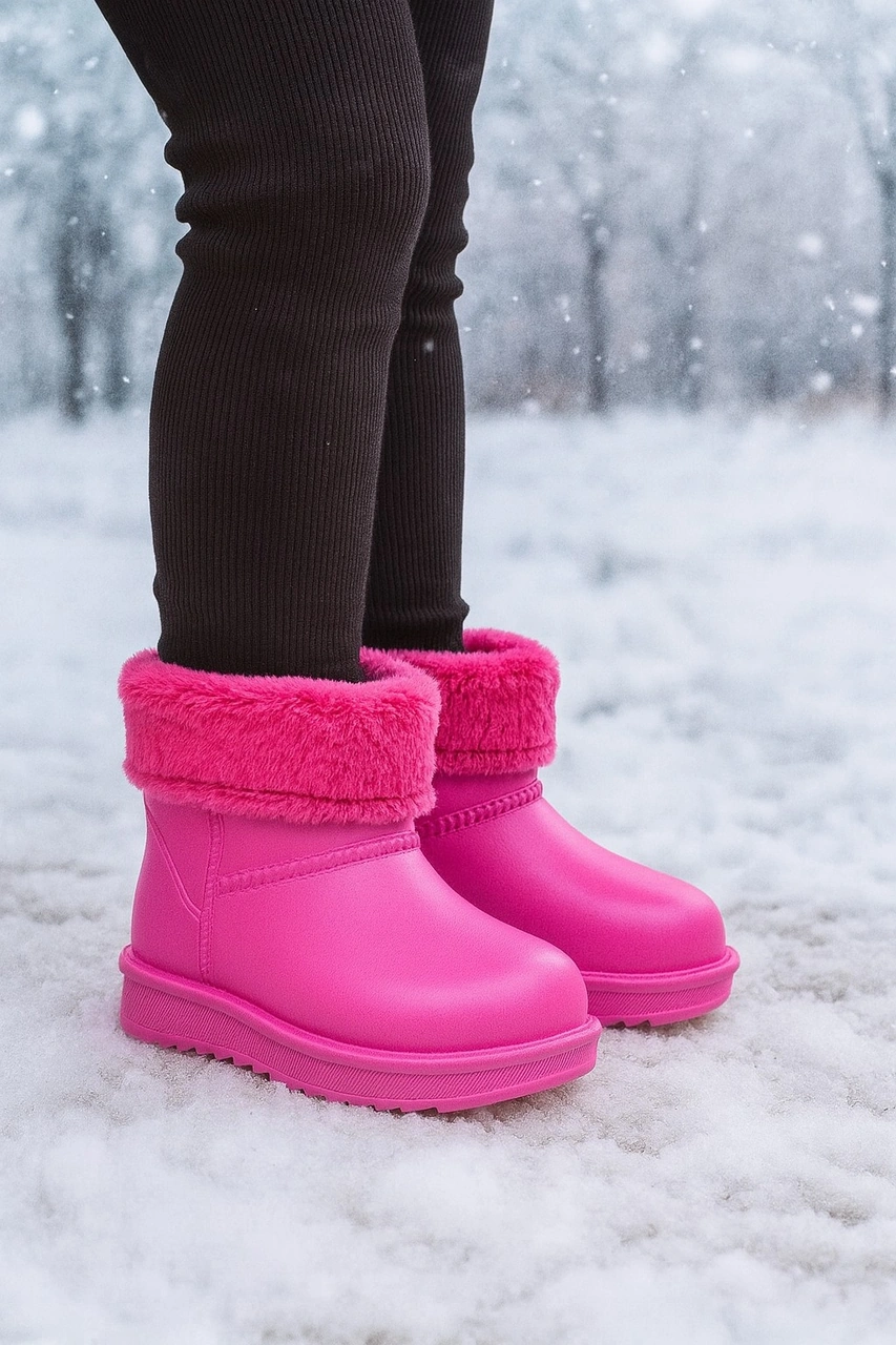 Su Geçirmez İçi Kürklü Kız Çocuk Eva Yağmur Kar Botu Fuşya