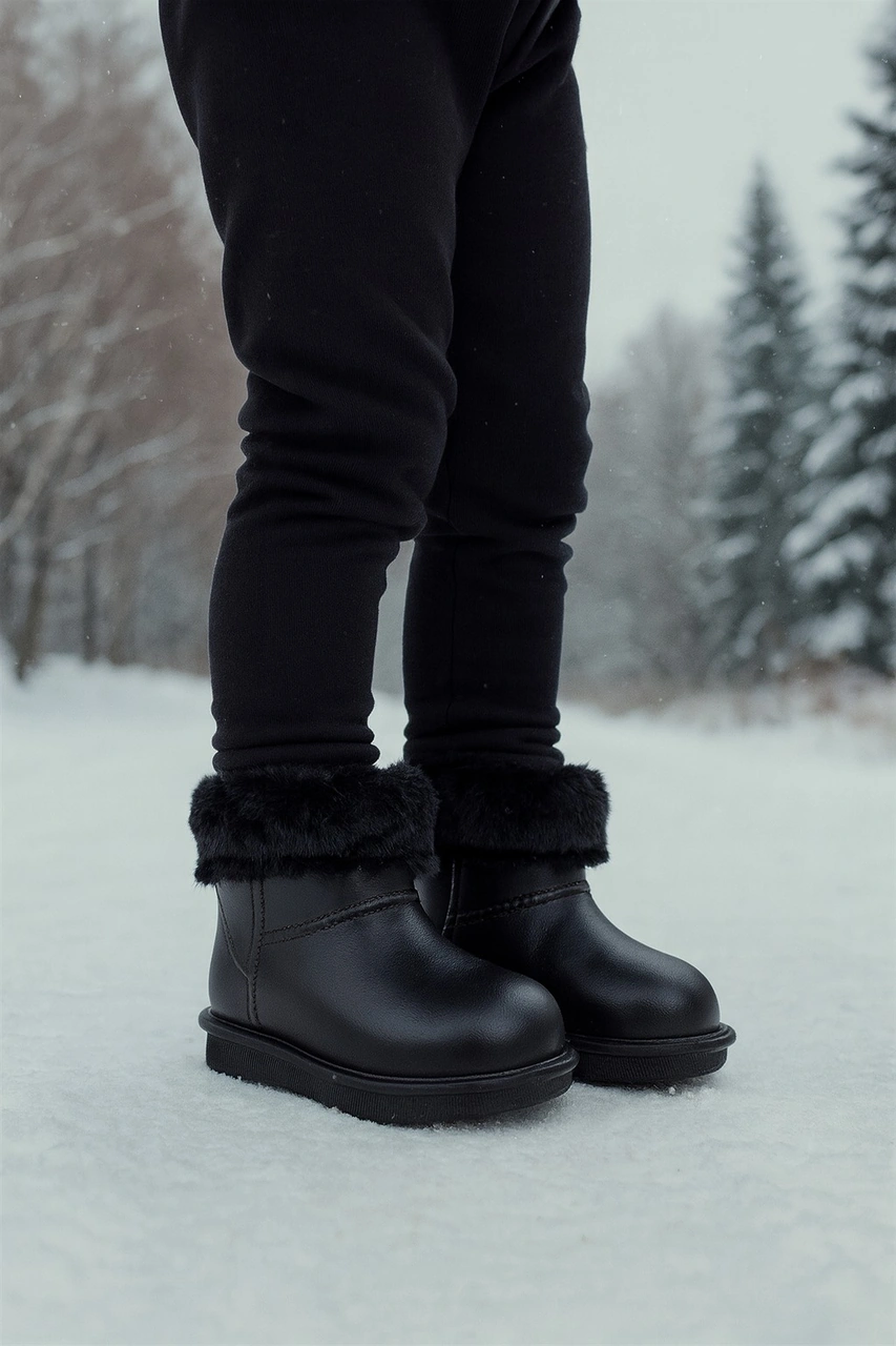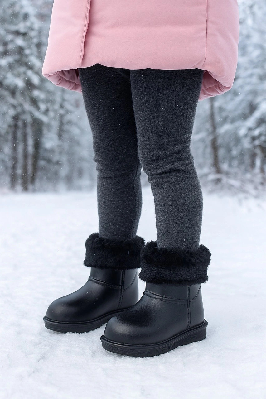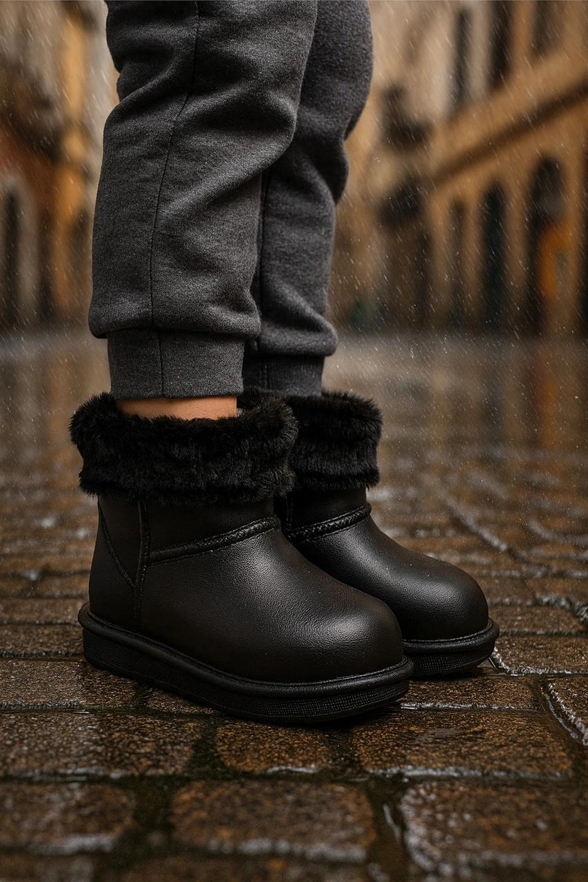 Su Geçirmez İçi Kürklü Kız Çocuk Eva Yağmur Kar Botu Siyah