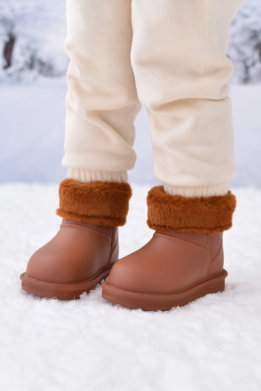 Su Geçirmez İçi Kürklü Kız Çocuk Eva Yağmur Kar Botu Taba