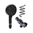 Su Tasarruflu 10 Modlu El Tipi Filtreli Duş Başlığı, Paslanmaz Çelik Hortum + Braket, Mat Siyah Siyah